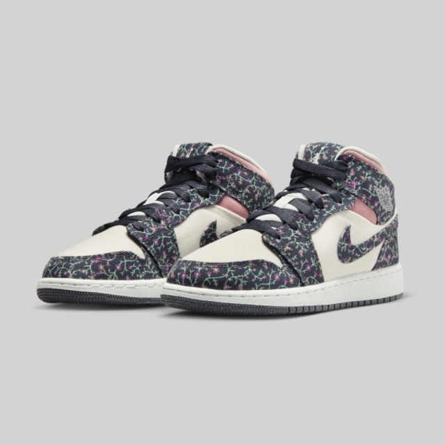NIKE Air Jordan 1 Mid SE GS Anthracite/Sail/Red Stardust ナイキ エア ジョーダン 1 ミッド ベージュ フラワー 花柄 キッズ レディース アメリカ 海外 限定