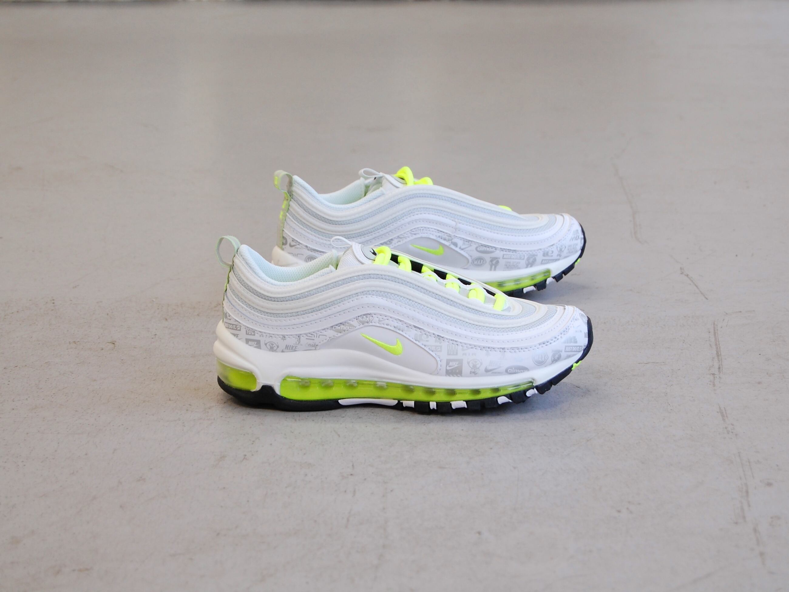 NIKE air max 97 gs white/volt/black/pure platinum ナイキ エアマックス 97 グレードスクール 白/黄/黒/灰 ホワイト イエロー JUST DO IT ロゴ USA 海外 限定