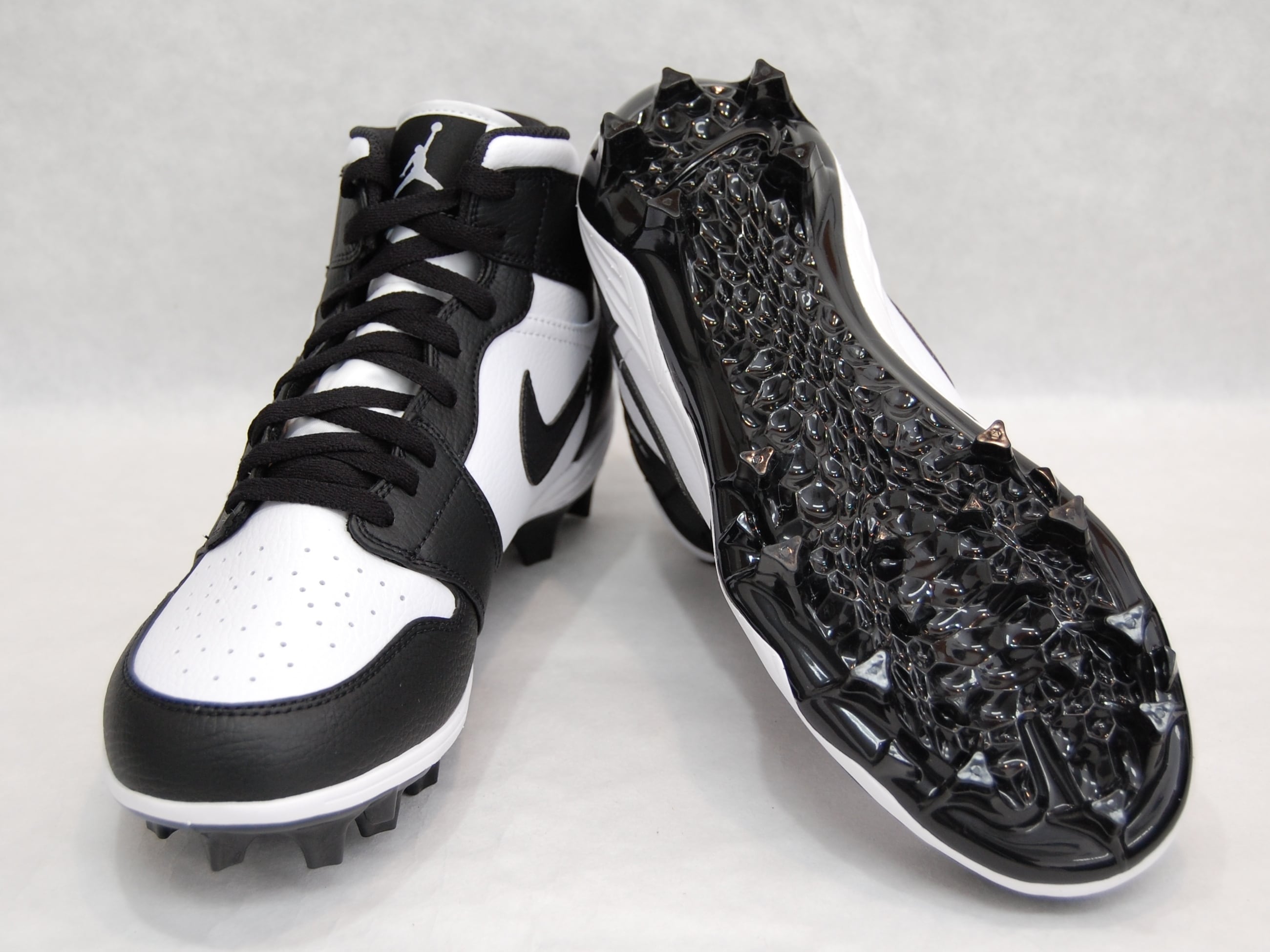 エアジョーダン1がベースのフットボールスパイクでパンダカラー。